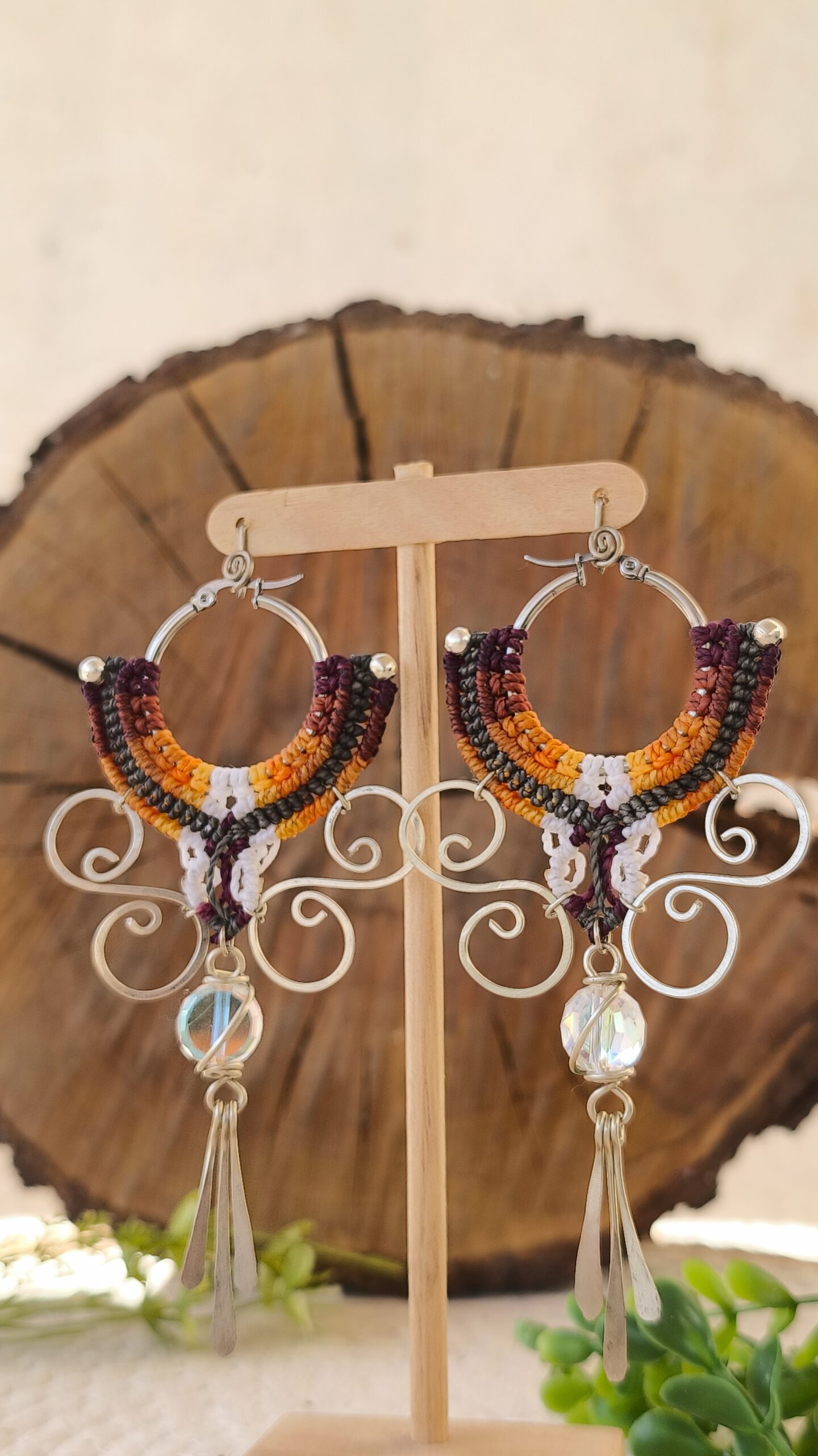 Eleva tu estilo con estos aros de diseño exclusivo. La argolla de acero quirúrgico, el tejido de macramé y los delicados espirales crean una pieza atemporal y sofisticada. La piedra, como un punto focal, añade un toque de lujo y misterio. Perfectos para cualquier ocasión especial.