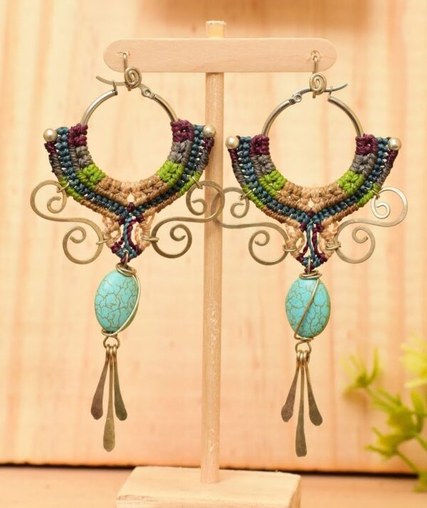 ¿Estás lista para experimentar la magia de una joya única? Argolla de acero con tejido en macrame con colores a elección piedra turqueza y detalles metálicos.