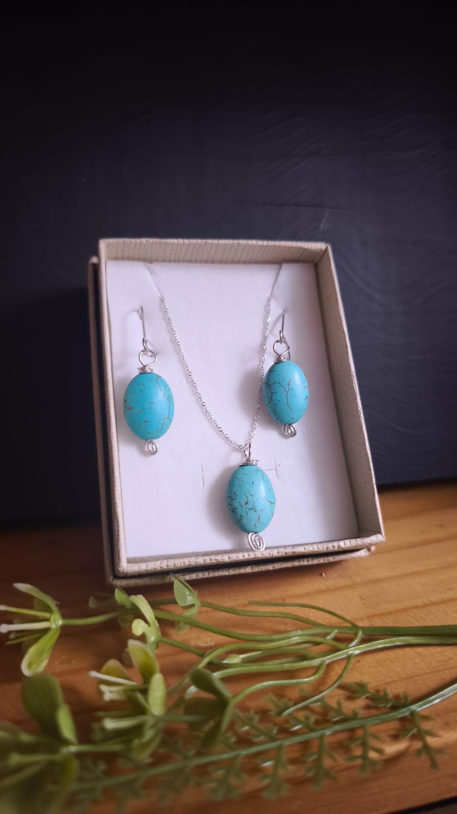 Cada pieza ha sido diseñada con detalles de alambrismo artesanal y espirales en plata, que abrazan la piedra con delicadeza y sofisticación. Gracias a la calidad de la plata de ley, este conjunto es hipoalergénico y mantiene su brillo con el tiempo, siendo perfecto tanto para el uso diario como para ocasiones especiales. Para que la experiencia sea completa, el set se presenta en una encantadora cajita de regalo, lista para entregar como un detalle inolvidable o para guardar tus joyas con el cuidado que merecen.